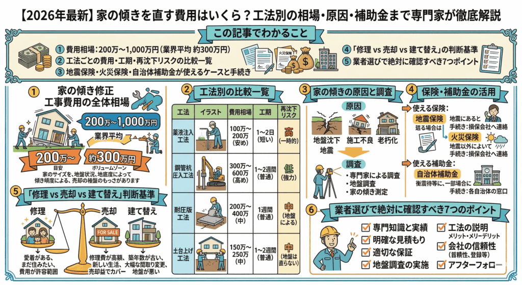 【2026年最新】家の傾きを直す費用はいくら?工法別の相場を徹底解説!